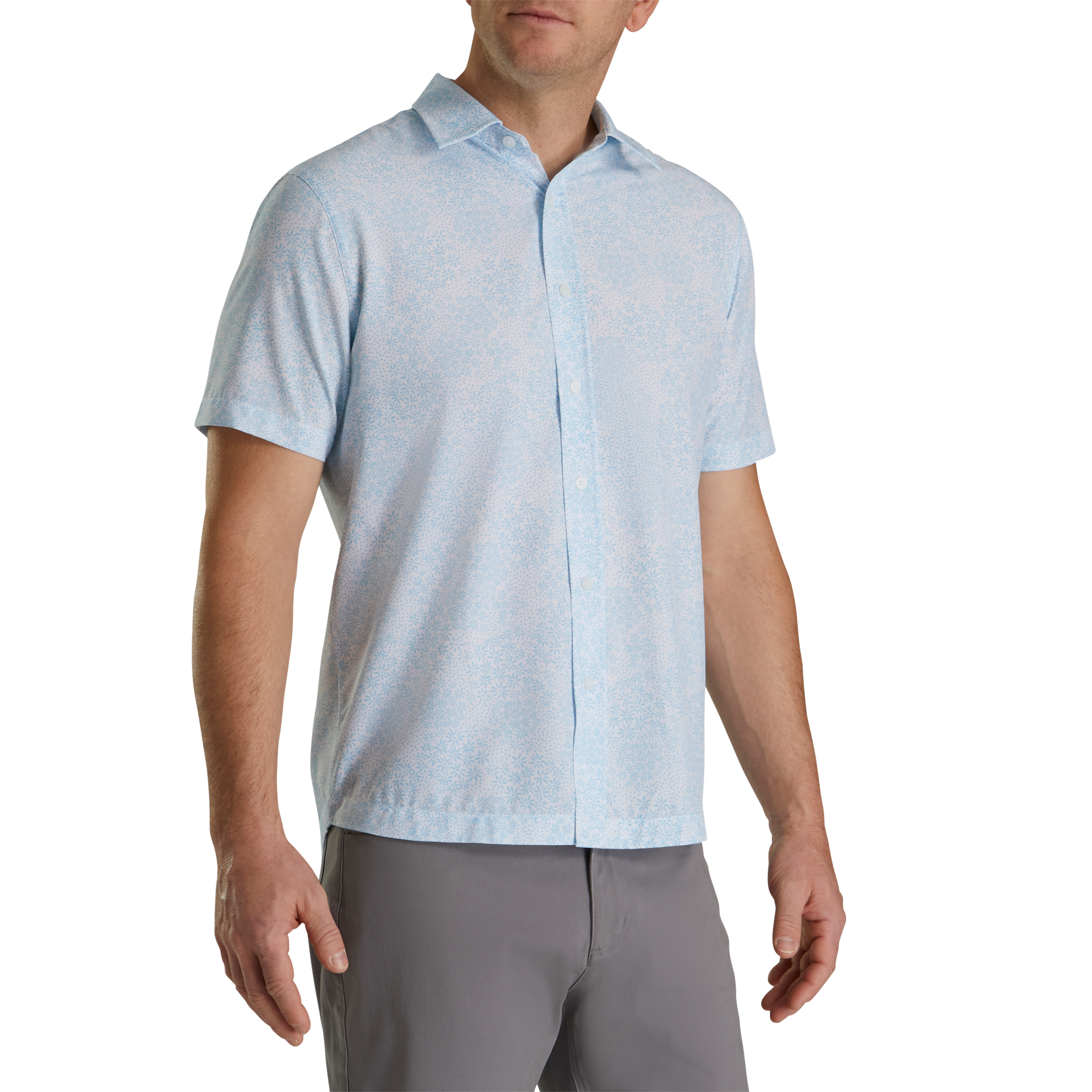 Micro-Floral Short Sleeve Performance Woven-Previous Season Style