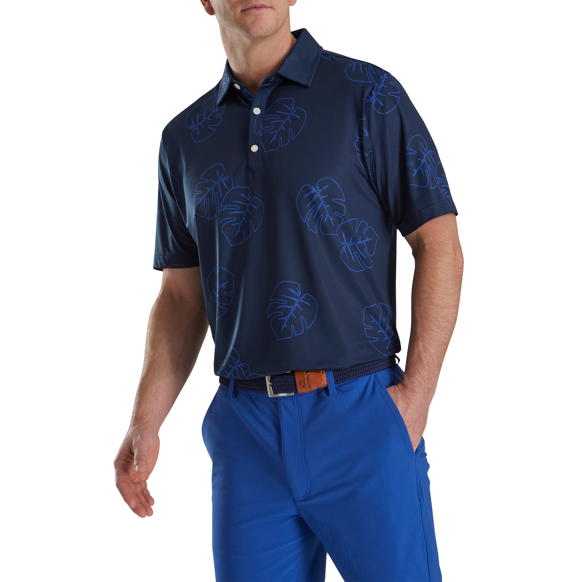 Jungle Leaf Print Lisle Self Collar-Previous Season Style
