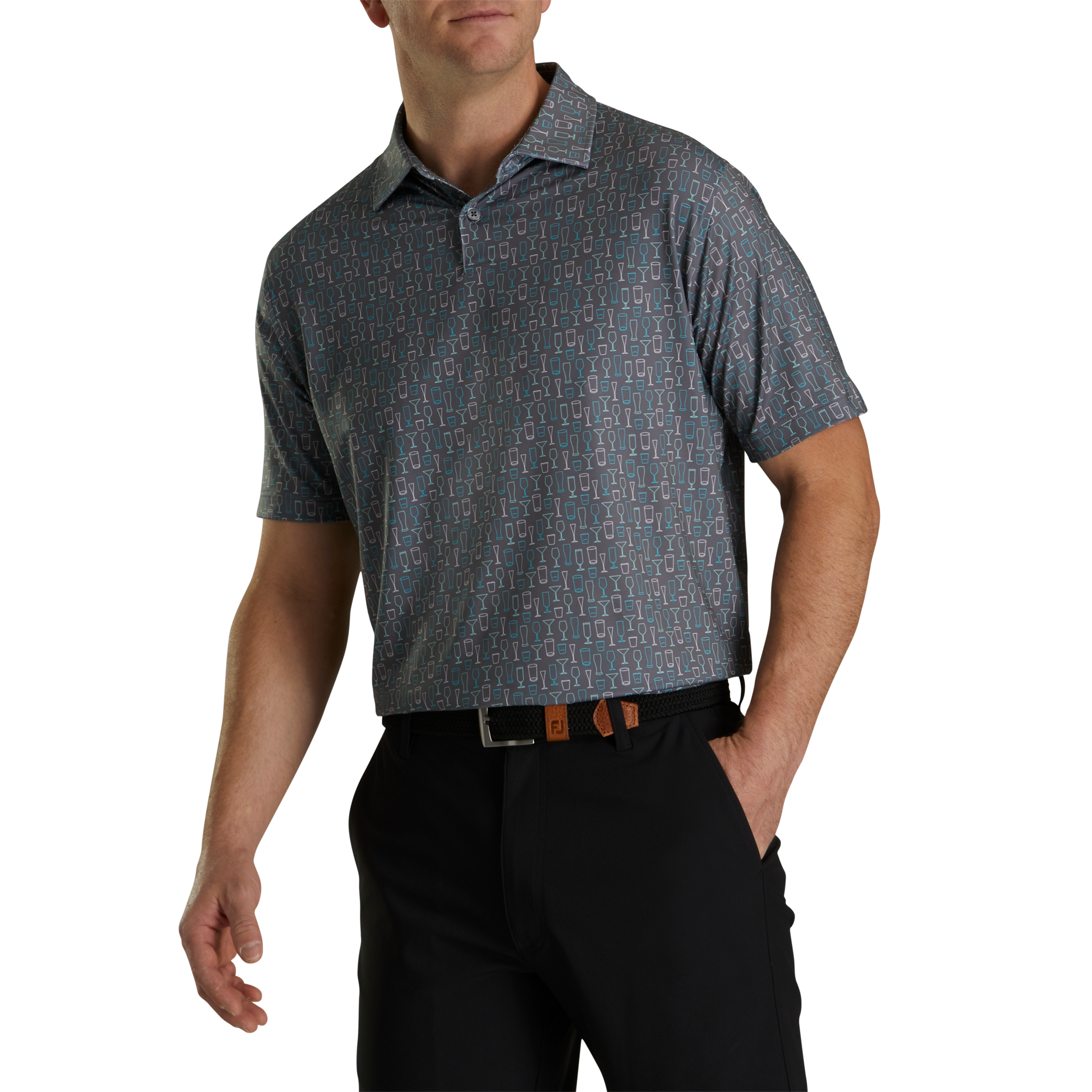 Athletic Fit Lisle Glass Print Self Collar-Previous Season Style