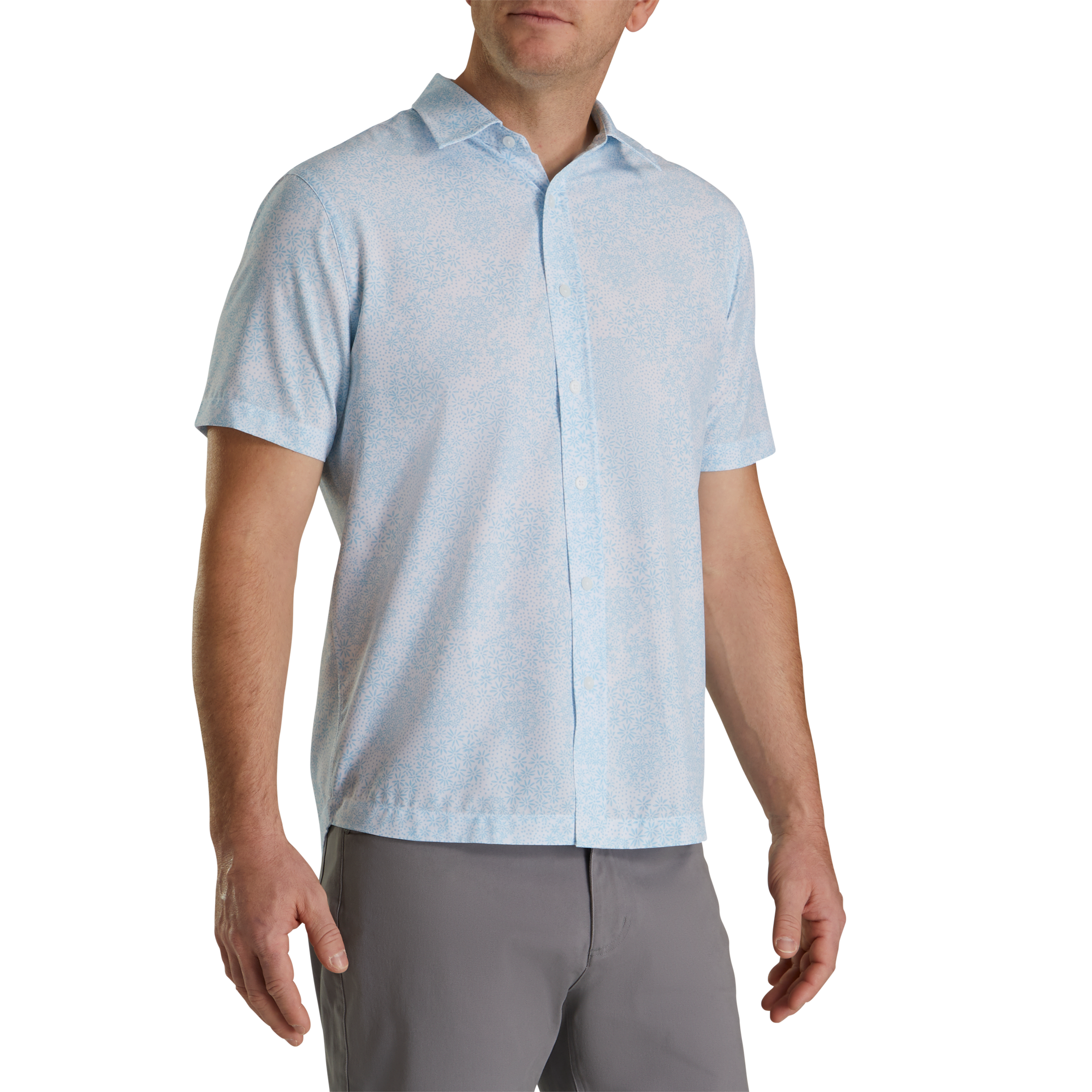 Micro-Floral Short Sleeve Performance Woven-Previous Season Style